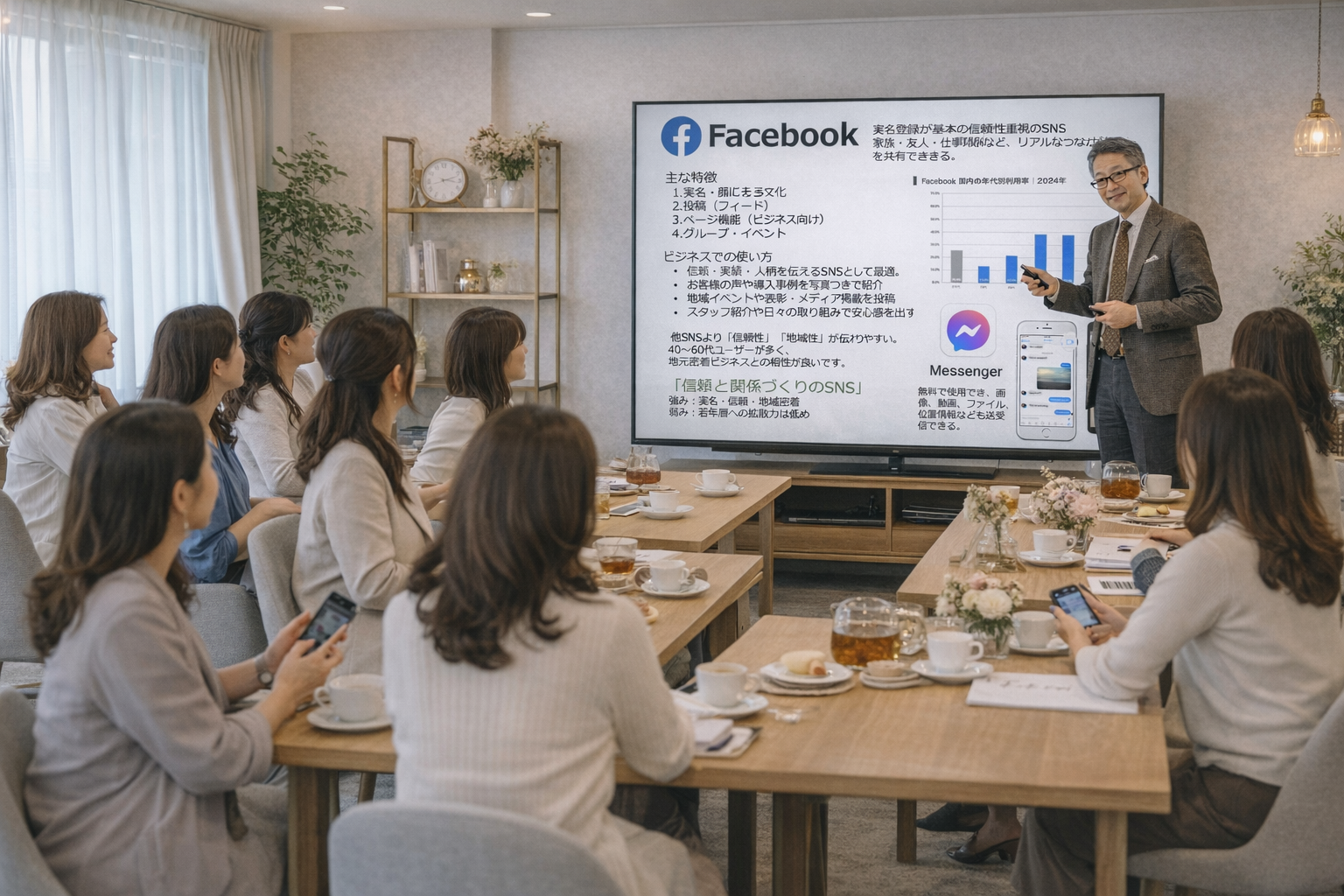 投稿テーマ設計、継続のコツ、導線づくり、「見込み客→問い合わせ」までの流れを作る。