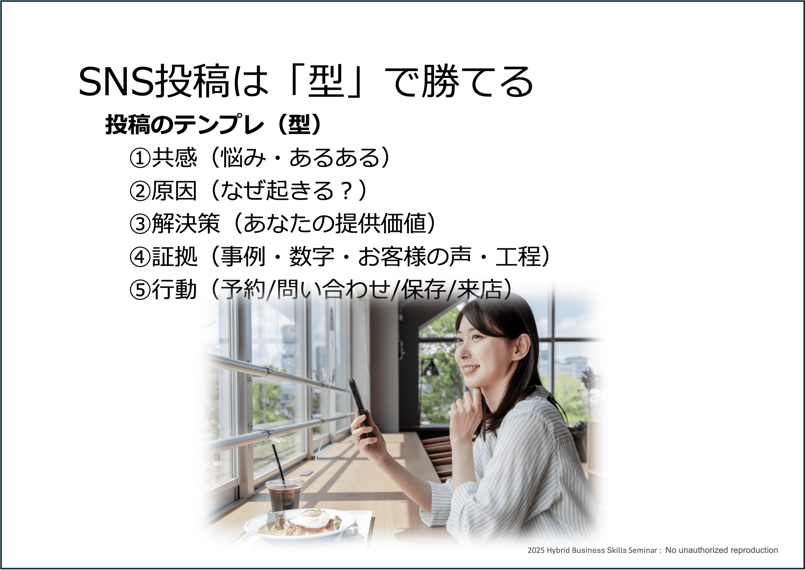 - SNS投稿がラクになる 型(テンプレ)の考え方が身につく