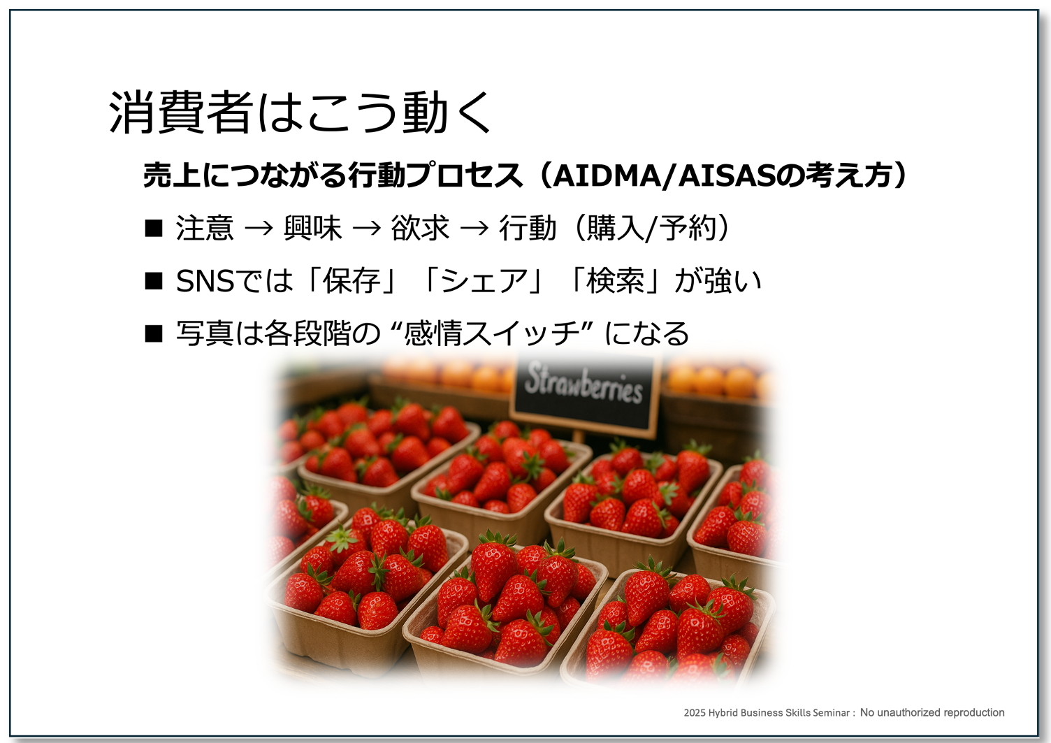顧客心理の基本と、反応が出る言葉・見せ方、投稿やチラシの「読まれる順番」の作り方。